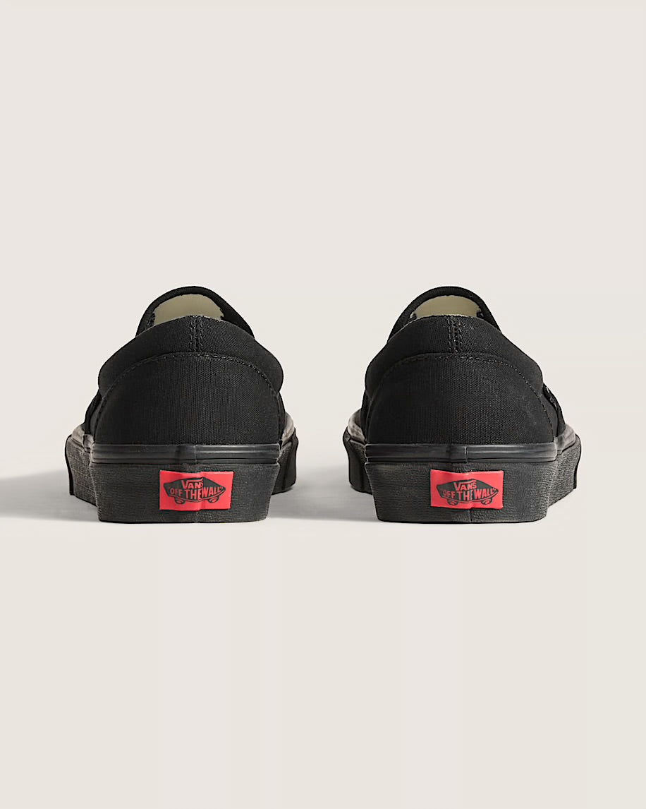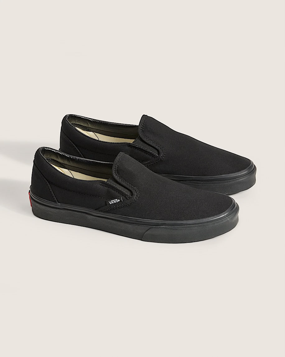 All black everything. Vans #98 has been an integral part of the Vans line-up since its release in 1979, but these all-black Slip-On sneakers raise the style stakes to another level while keeping the focus on comfort and accessibility. The low-profile canvas uppers and supportive paddle collars make sure of that. The Classic Slip-On has come a long way since it first erupted on the scene, but the mix of comfort and style remains timeless.