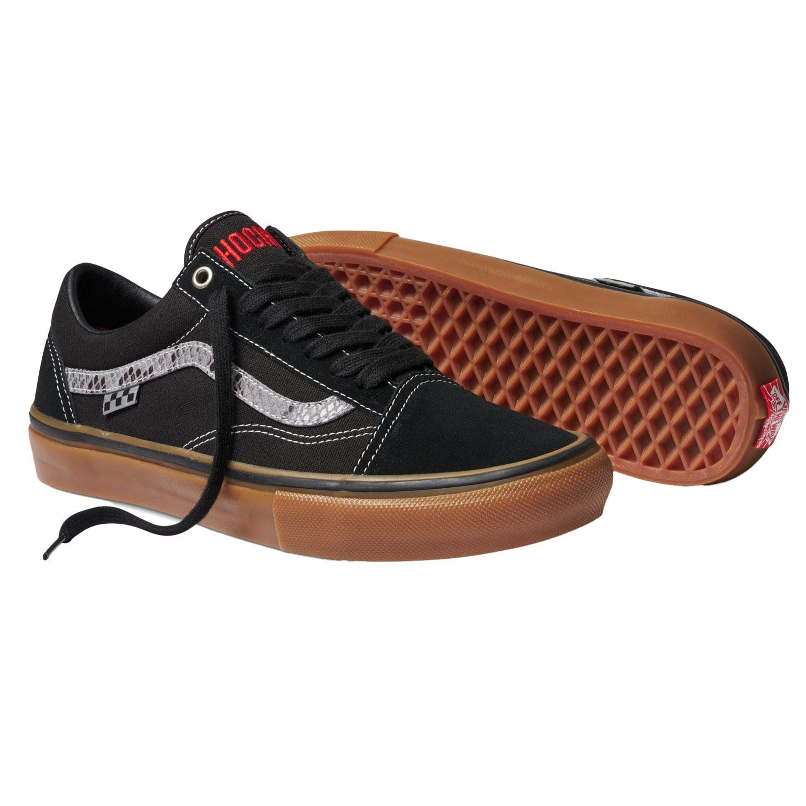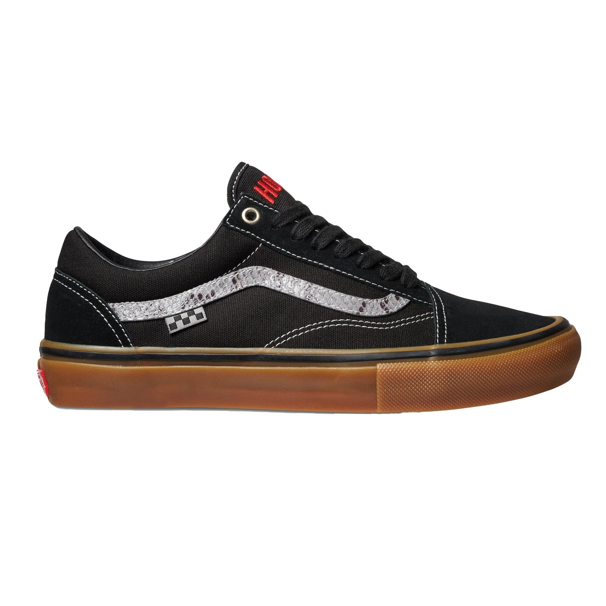 Since first working together in 2018, Vans Skateboarding and Hockey have established a singular aesthetic of their own. This season, a fresh iteration of the Skate Old Skool continues this partnership. Boasting a black and gum color scheme with snakeskin embellishments and bold red block letter embroidery, the Vans x Hockey Skate Old Skool meets the no-holds-barred skate style of the Hockey team while delivering a distinct look packed full of Vans Skateboarding’s very best tech.